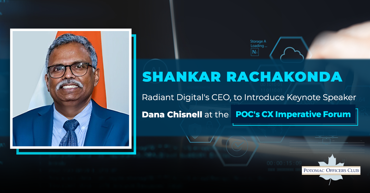 Dr. Shankar Rachakonda has served as the Chief Executive Officer at Radiant Digital since 2015. In his leadership, he initiated the sponsorship of many forums to explore new technologies to improve citizen experiences and public services. One such forum is the Radiant Digital-sponsored CX Imperative Forum, organized by the Potomac Officers Club.